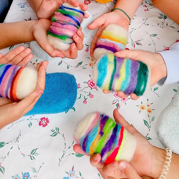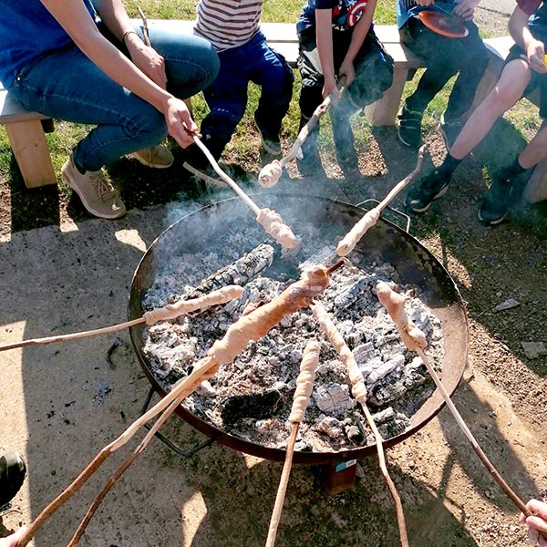 Darüber hinaus bieten wir Naturerlebnisse im Kräuter- oder Gemüsegarten an, Kreativerlebnisse wie Filzen oder besondere Abenteuer wie Steckerlbrot backen am Lagerfeuer.