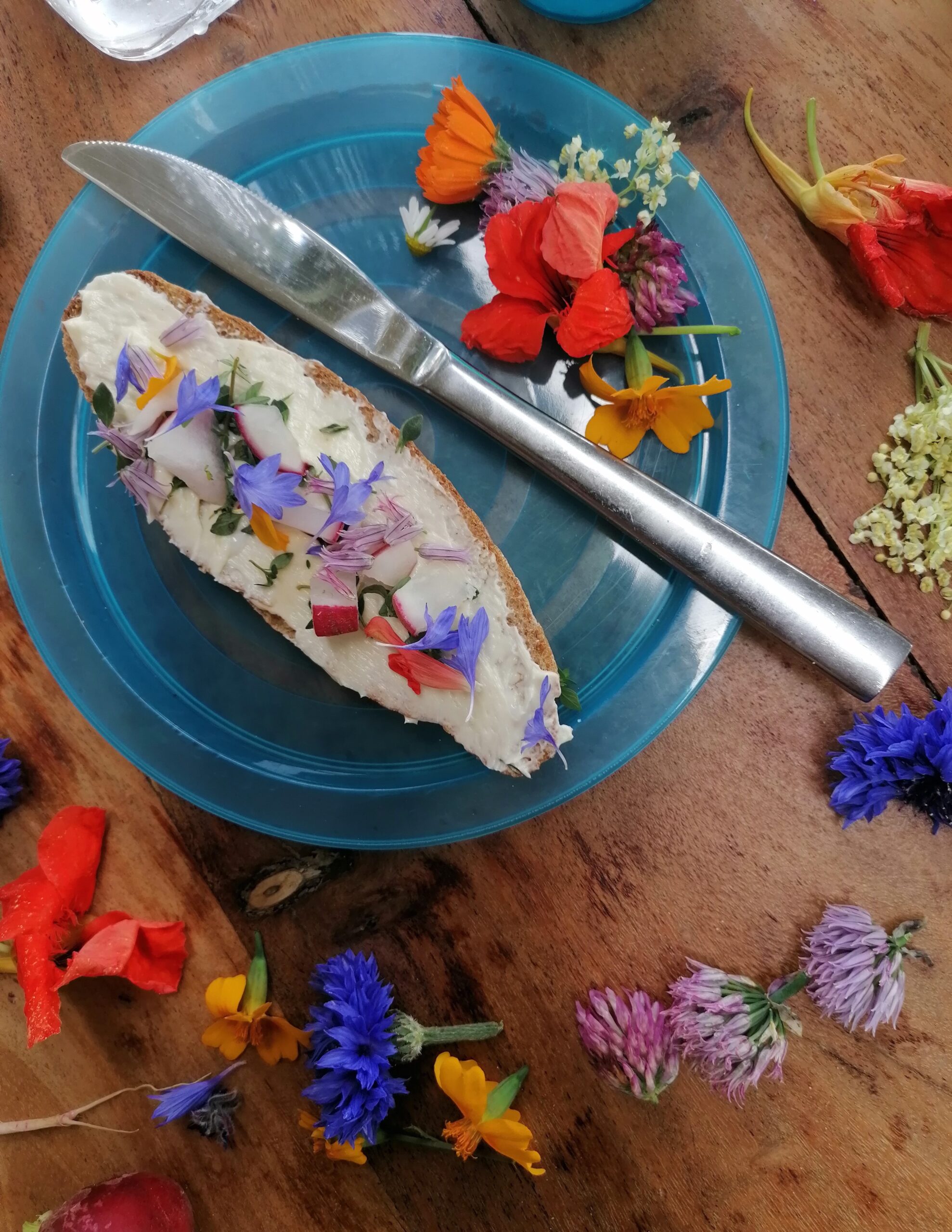 „Heidemarie hat mit ihren vorbereiteten Angeboten nicht nur die Kinder, sondern auch uns Erwachsene mit vielen WOW-Momenten überrascht. Vom Kennenlernen und Ernten der Blüten, Kräuter und Beeren aus ihrem Garten bis hin zum Zubereiten einer bunten Blütenpizza, Kräuteraufstrich und Blütenessig durften die Kinder ihrer Kreativität freien Lauf lassen und wurden besonders liebevoll, geduldig und mit ganz viel Know-how sowie Herz von Heidemarie unterstützt.“